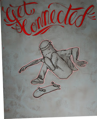 I've been spray painting a lot in my garage lately, on found canvases and found wood. By "a lot" I mean more than "not" which has been the status over the past three years. Mostly I'm just draining half-empty cans of junk paint, experimenting with any caps I have remaining, trying to regain any can-control I might have ever had (which doesn't say much). I've never enjoyed art so much as when I've had a can of paint in my hand. It's seriously the most satisfying art I've ever made. Unlike a tiny, pencil-like brush that involves slight movement of your wrist, aerosol paint involves full body movements and larger than life painting. Just don't forget your mask...